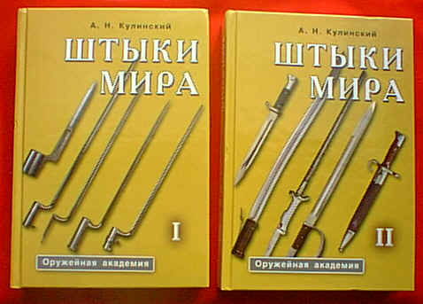 By Alexander Kulinsky. Language -Russian. Two books. A.Kulynsky is the Senior Academic the Artillery Museum, Honored Cultural Worker. Those two books are monographic publication on the history of BAYONETS from the time it came about to the end of 20th century. Books covered more then 1000 bayonets from the all countries around the world. Fully illustrated in white and black. HARD COVER. Size 8¼"×5¼. Each book contains more then 500 pages. |