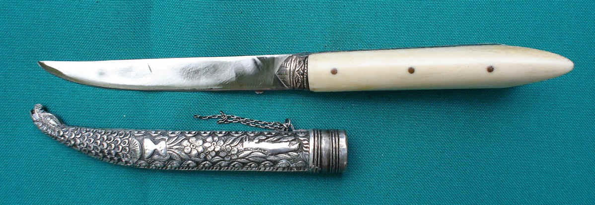 silver. Bone handle. Overall length